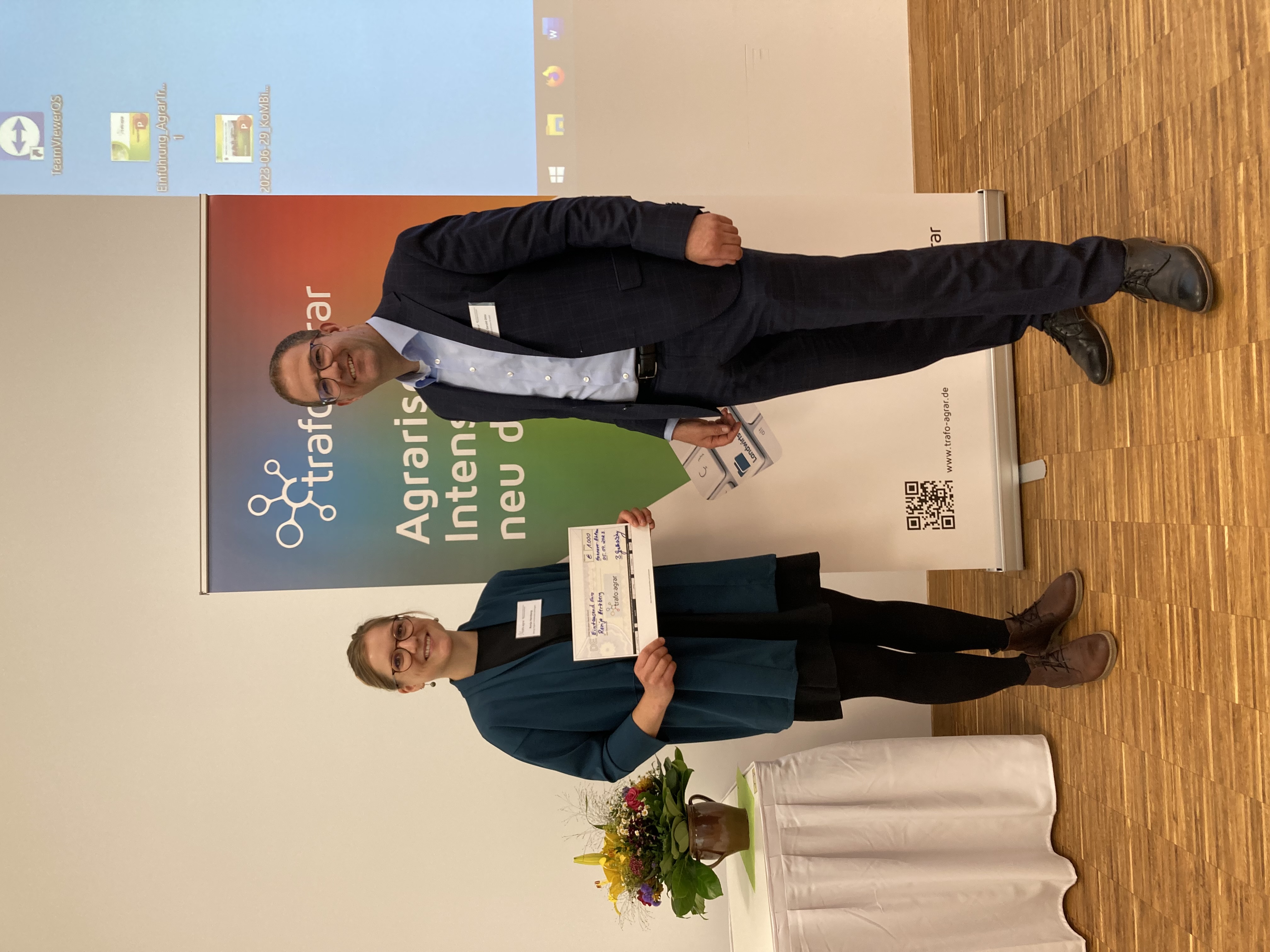 Im Rahmen der Jahrestagung vom Verbund Transformationsforschung agrar in Niedersachsen (trafo:agrar) in Zusammenarbeit mit der Landwirtschaftskammer Niedersachsen fand die Preisverleihung des trafo: nachwuchspreises 2023 von Bewerber*innen aus dem Verbund im Konferenzzentrum der Landwirtschaftskammer in Hannover-Ahlem statt. Ziel des Wettbewerbes war es, innovative Konzepte, Technologien, Produkte und Lösungen auszuzeichnen, die zu einer nachhaltigkeitsorientierten Transformation der Agrar- und Ernährungswirtschaft beitragen